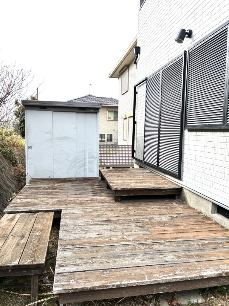 → 雨の日には室内干しスペースとしても活用可能。 - ウッドデッキ付き