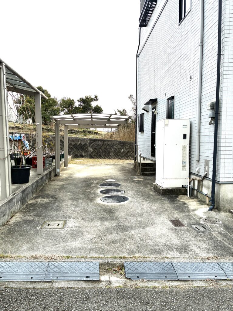 → ご家族のくつろぎスペースやBBQにも。 - カーポート完備+駐車3台可能(車種による)